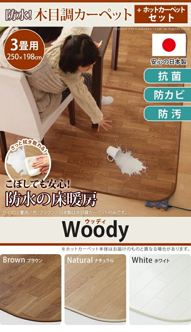 木目調ホットカーペット・カバー 〔ウッディ〕 3畳用(250x198) +ホットカーペット本体 2点セット mu-i-5200003送料無料 北欧 モダン 家具 インテリア ナチュラル テイスト 新生活 オススメ おしゃれ 後払い マット 絨毯 ラグ カーペット リビング