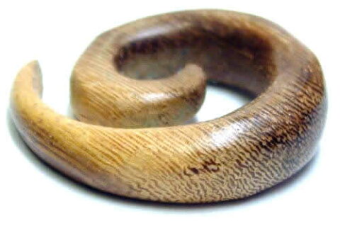 螺旋状に天然木を削りだして作った天然素材ボディピアス。
