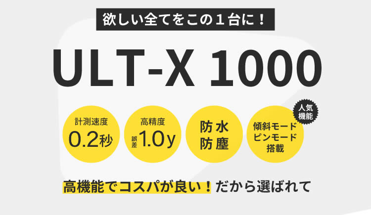 最大計測距離、800ヤード・測定精度が±0.3Yで、新ルール対応の傾斜モード+外から見える簡易切り替りで競技ゴルファーにもオススメ。